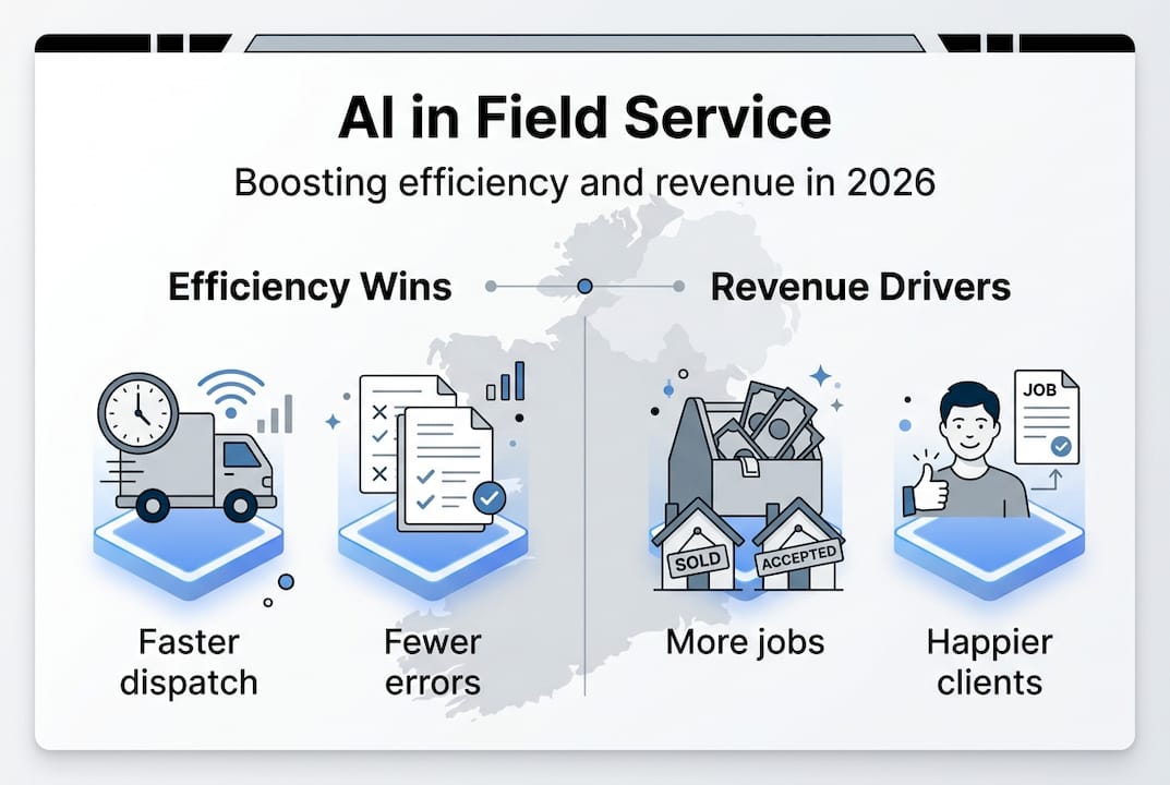 AI, in plain terms, means software that learns from data and makes decisions or recommendations without needing a human to do it manually every time. In field service, that translates to tools that handle scheduling, dispatch, customer communication, and even fault prediction automatically. For an Irish plumbing or HVAC business, this is not abstract. It means fewer missed calls, faster job assignment, and less time spent on admin that used to eat into your evenings.