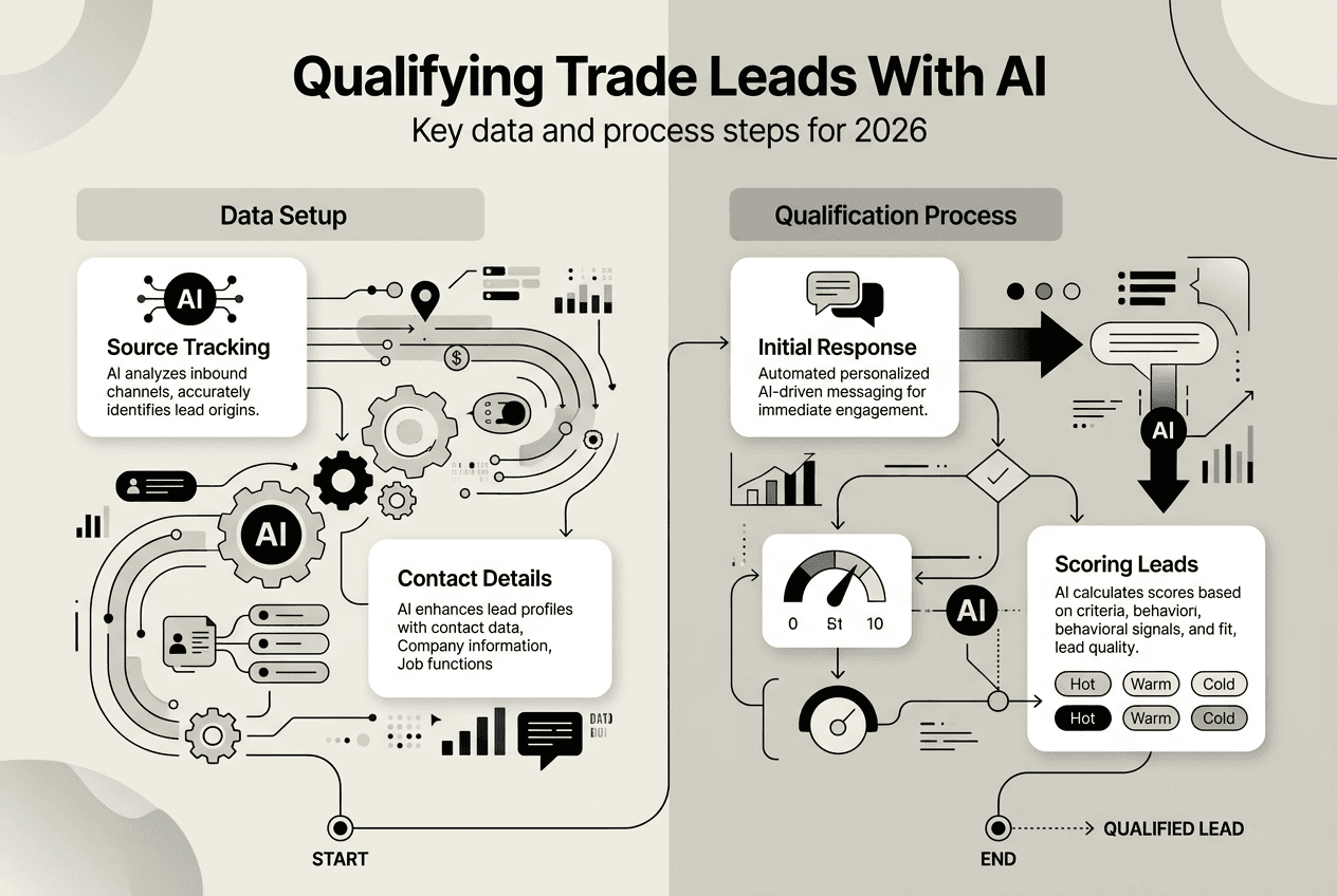 Effective AI lead qualification requires clean, structured lead data collected from customer interactions, enquiries, and historical sales records. Your system needs at least six months of lead history with complete fields for service type, location, budget indicators, urgency level, and conversion outcomes. The more consistent and accurate your historical data, the better AI can identify patterns distinguishing quality leads from poor prospects. Start by auditing your current CRM to ensure 80% or higher completeness across critical fields before implementing AI tools.